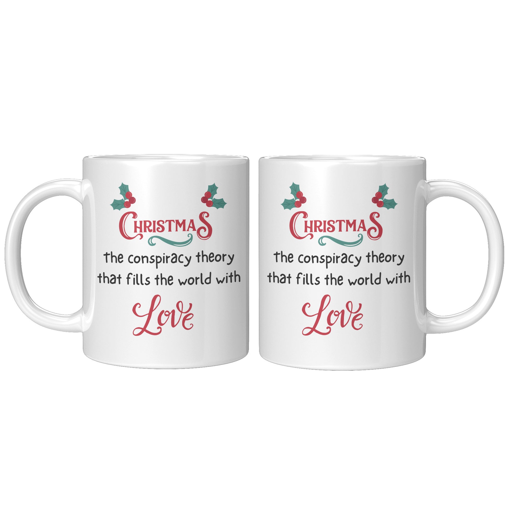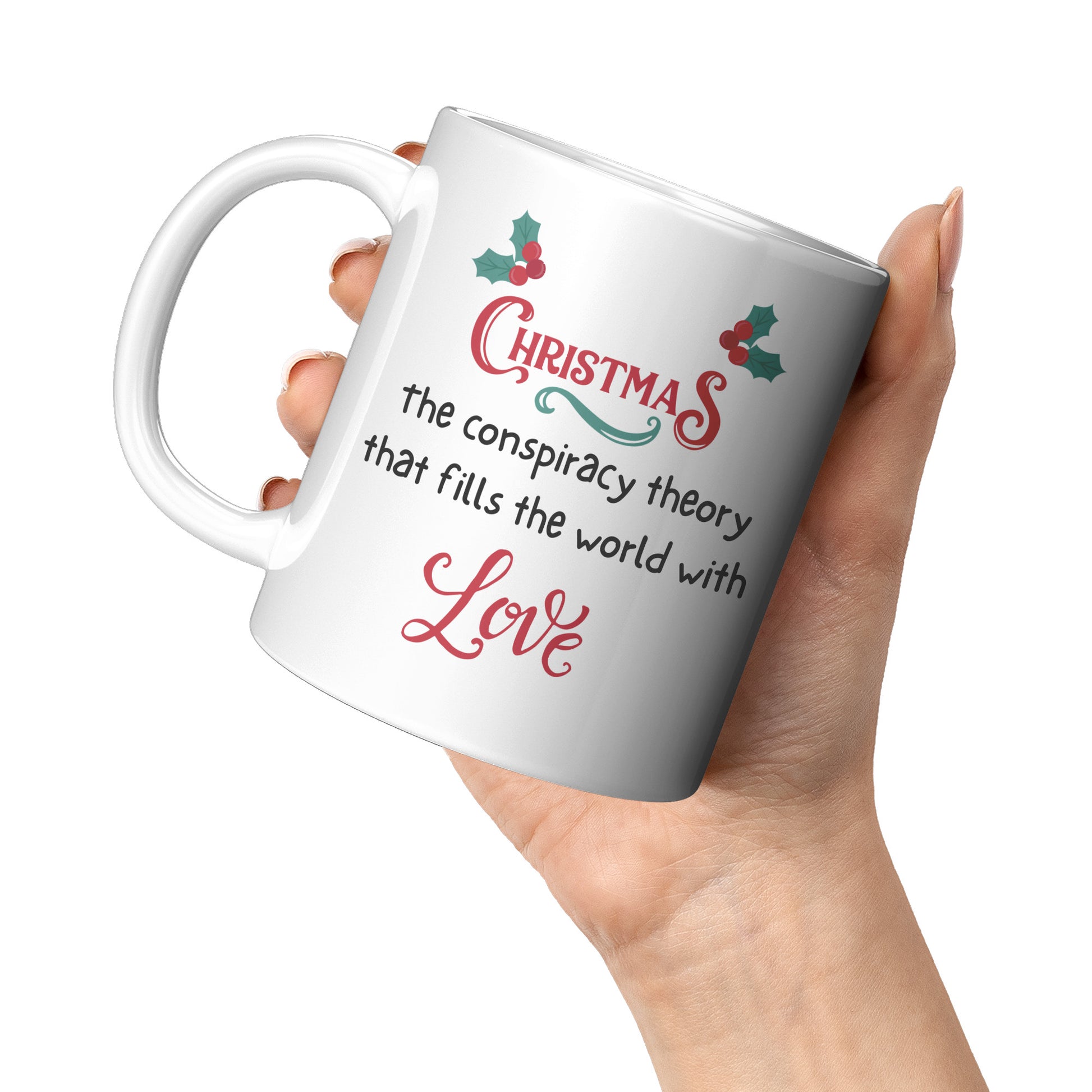 Christmas, The Conspiracy Theory That Fills the World With Love. This high quality 11oz ceramic white mug has a premium hard coat that provides crisp and vibrant color reproduction sure to last for years. Perfect for all hot & cold beverages.