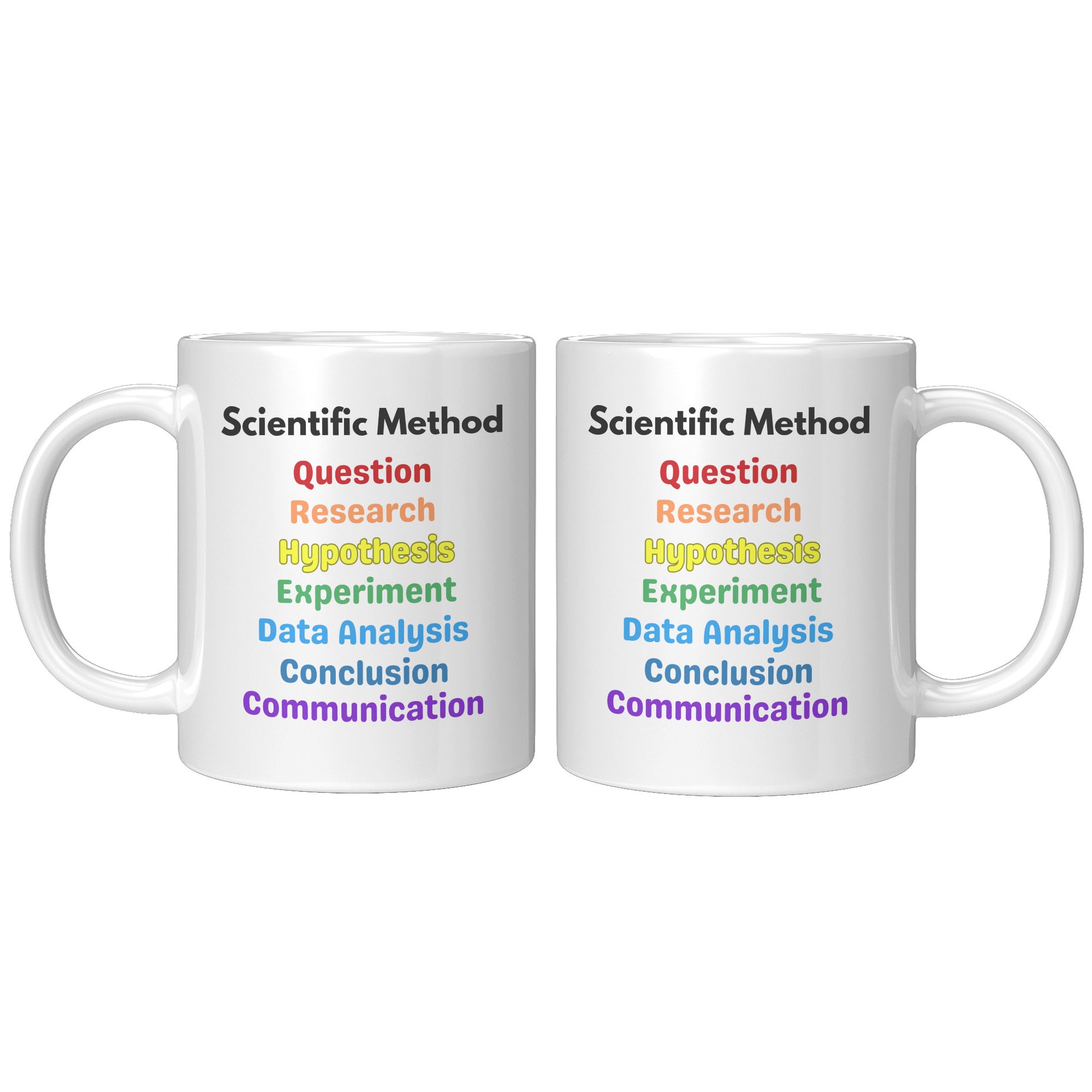 Scientific Method Gift Mug. Question, Research, Hypothesis, Experiment, Data Analysis, Conclusion, Communication.